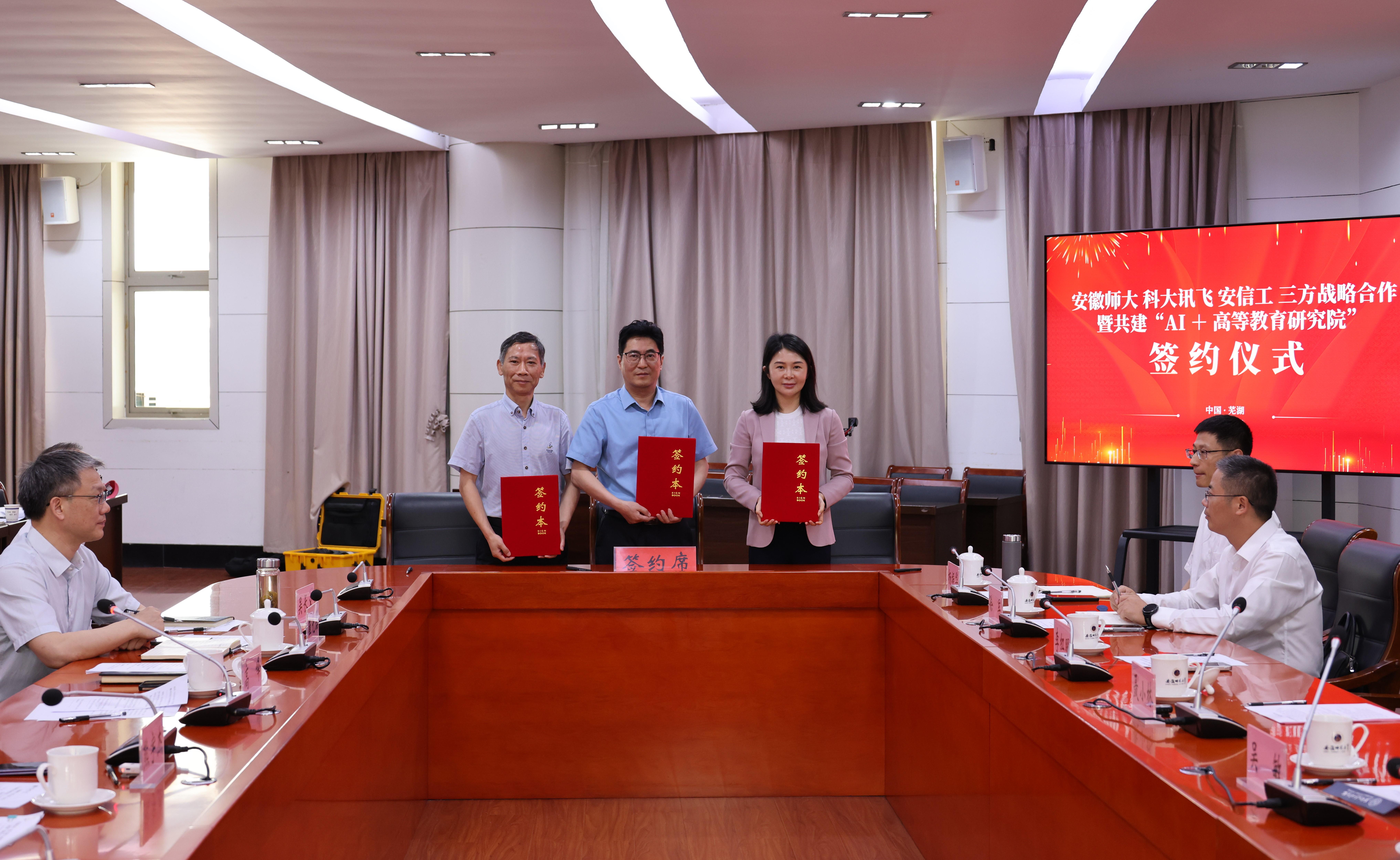 5月21日,72886必赢网址(以下简称安72886必赢)、科大讯飞股份有限公司、安徽信息工程学院在安72886必赢签署战略合作协议,三家单位围绕人工智能与教育教学深度融合、AI+科研创新、未来人才培养、高校数字化转型等核心议题达成重要共识,并宣布联合成立“AI+高等教育研究院”。